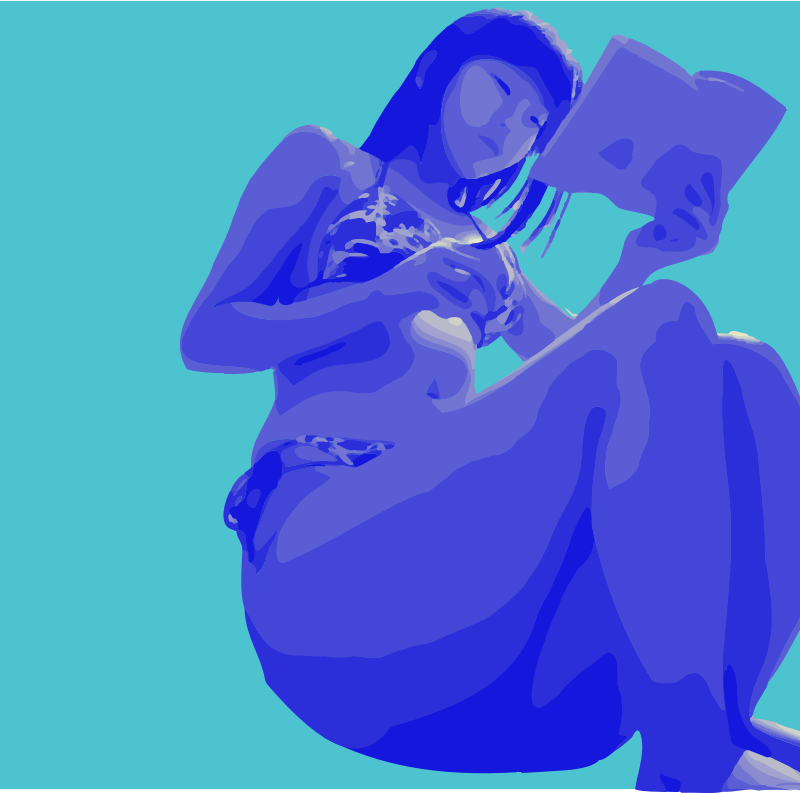 one of the fascinating things about collaborating with ai is when the machine dreams up unexpected stuff. I asked for the machine to try to imagine a lady reading at the beach and got this weird contorted angled thing, but it seemed summerish so I remixed it into the blue stuff you see here