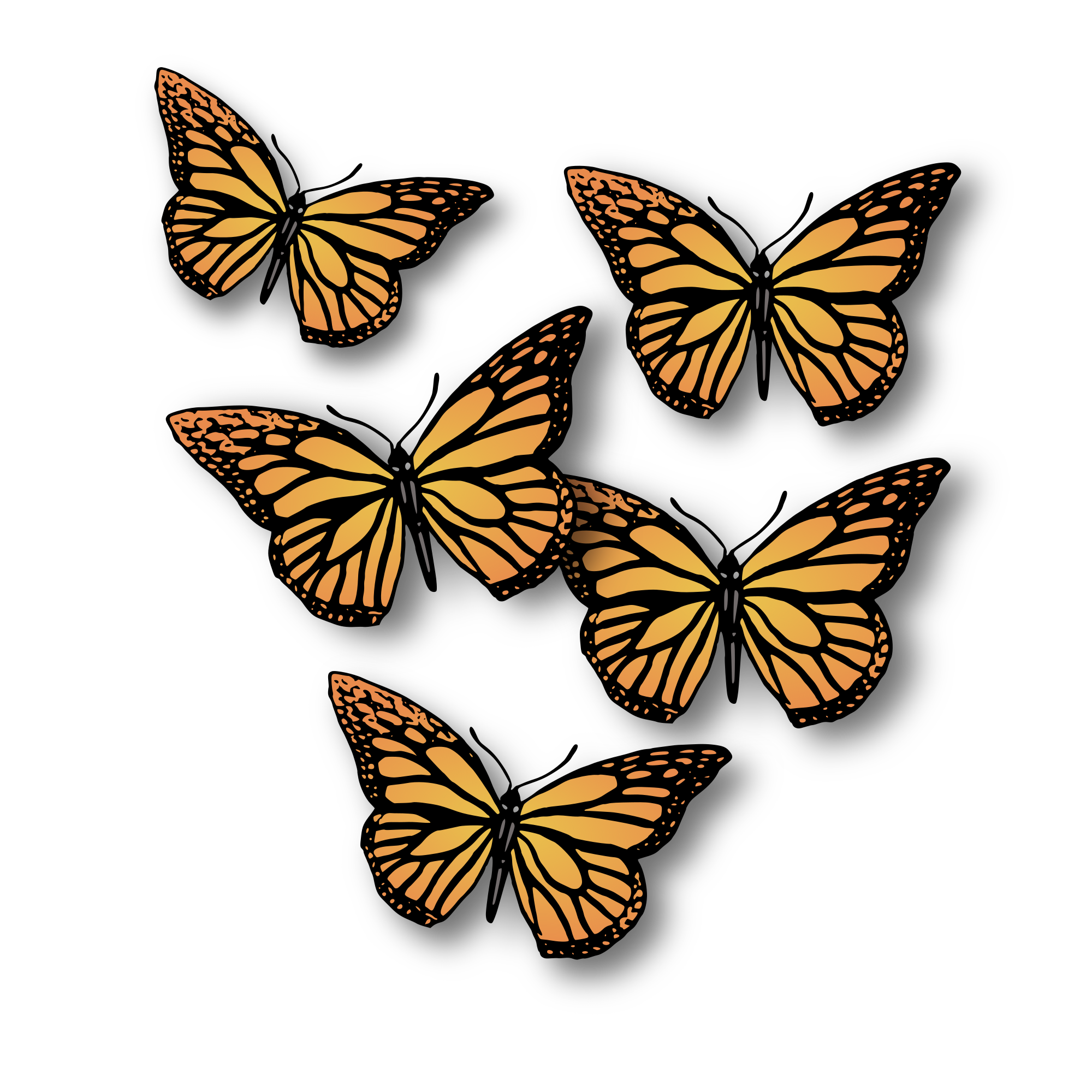 five orange butterflies