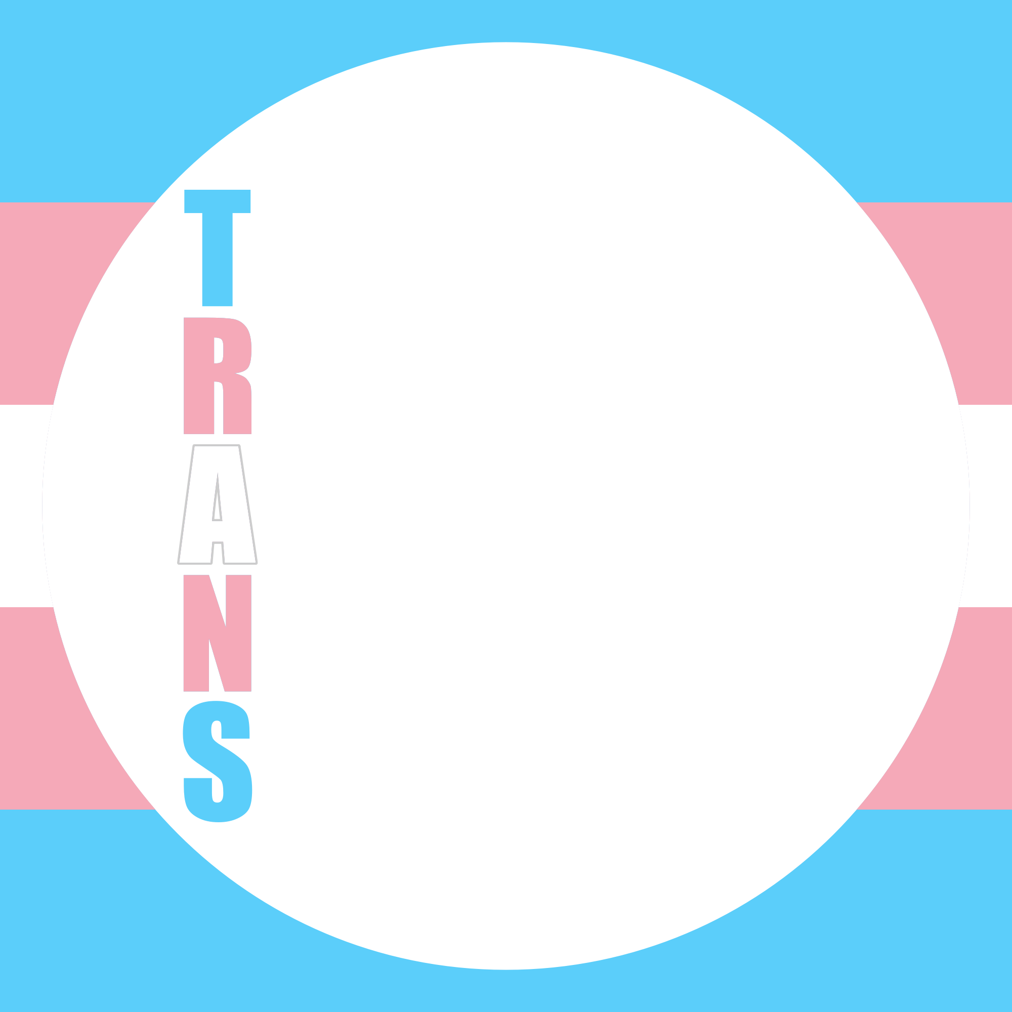 Transgender word vertically on a square background with a transparent round circle in the center.