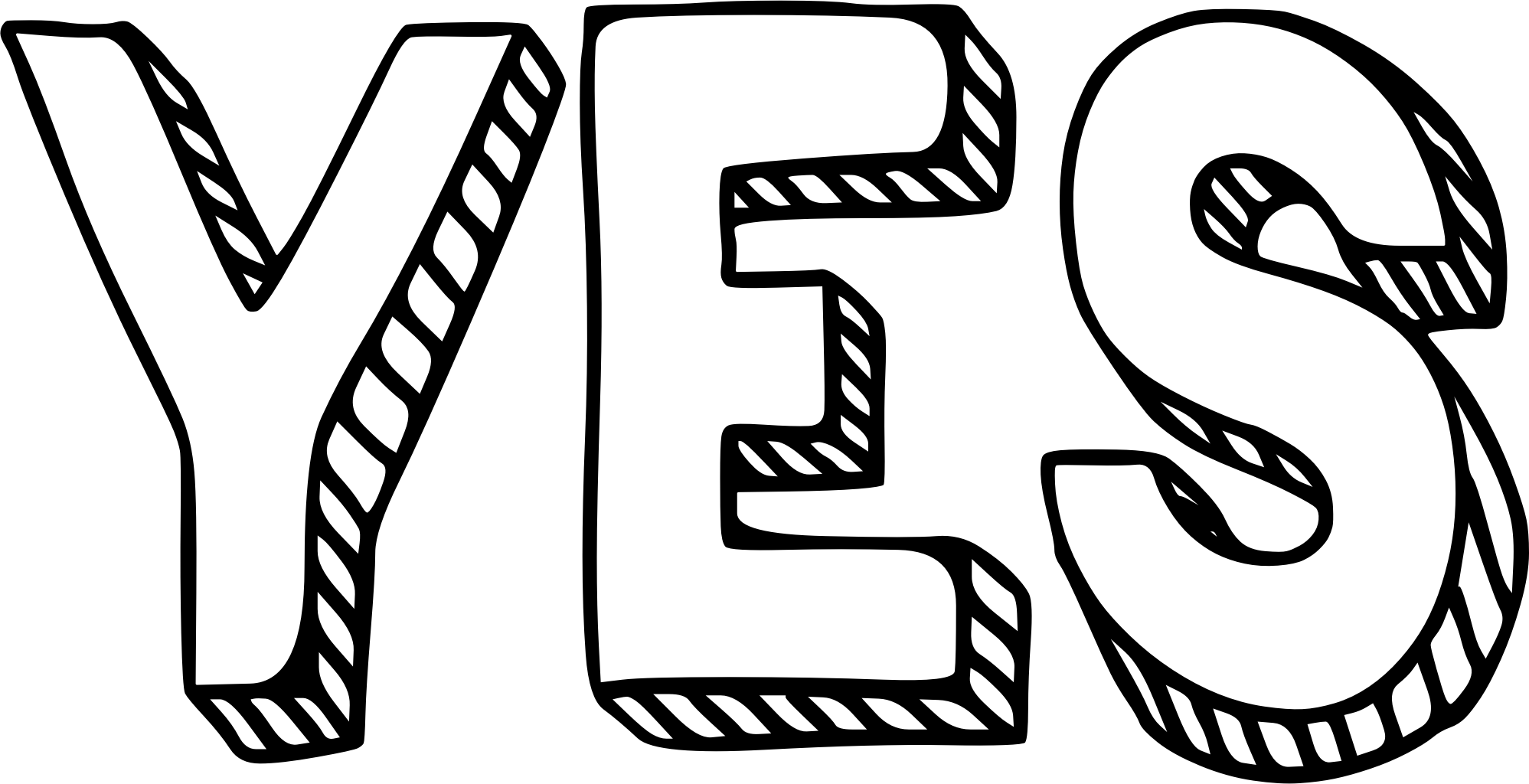 "Yes" text. Uses the zuka doodle freeware font by cove703 with white fill for the front of the text (not transparent), back outline and very light orange shaded edges to make it stand out more.