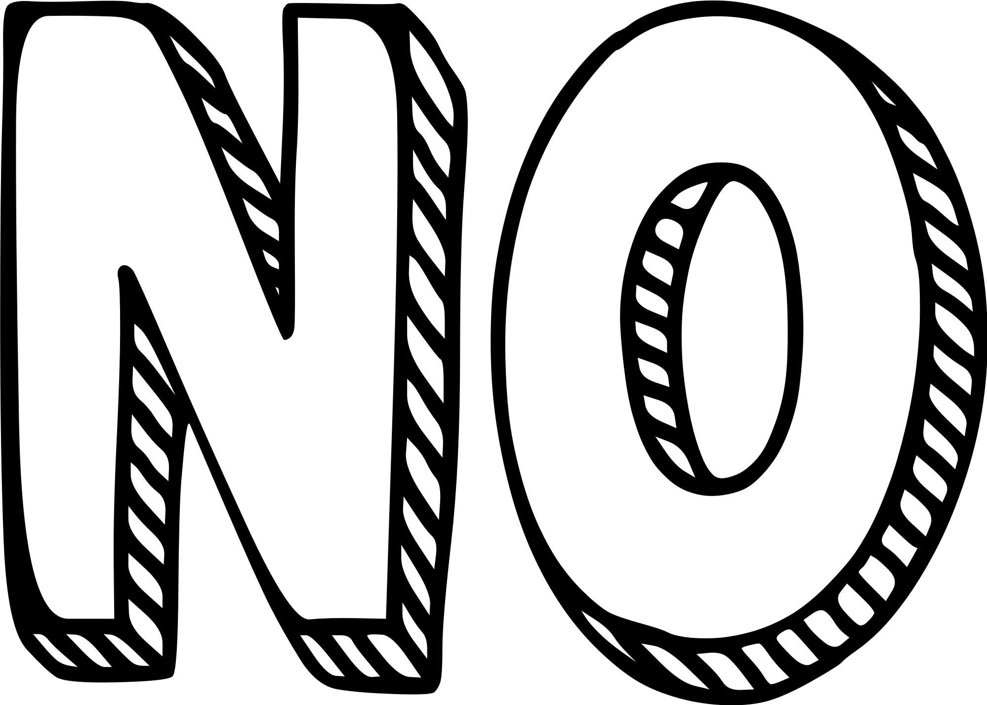 "NO" in 3D text. Uses the zuka doodle freeware font by cove703 with white fill for the front of the text (not transparent), back outline and very light orange shaded edges to make it stand out more.