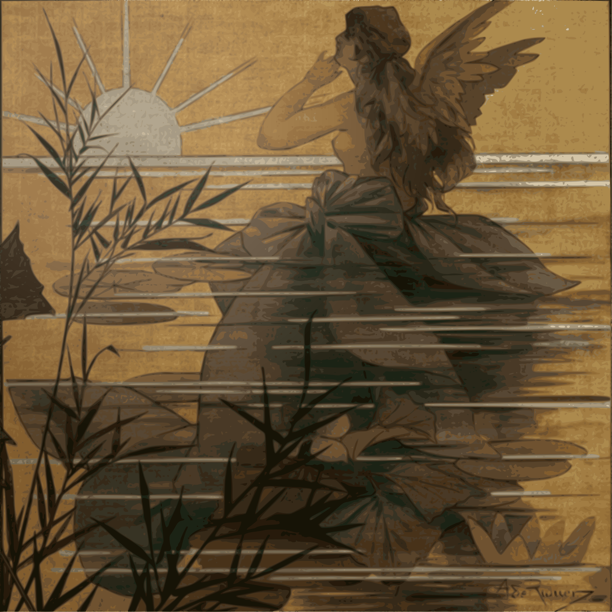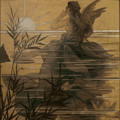 found on wikimedia commons.wikimedia.org/wiki/Category:Paintings_of_nymphs#/media/File:Alexandre_de_Riquer_-_Composition_with_winged_nymph_at_sunrise_-_Google_Art_Project.jpg