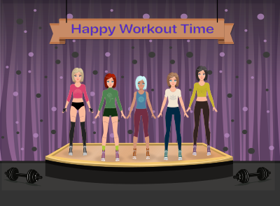 This reminded me of those 1980s / 1990s VHS workout tapes for some reason, so I thought I'd recreate that group workout thing for this