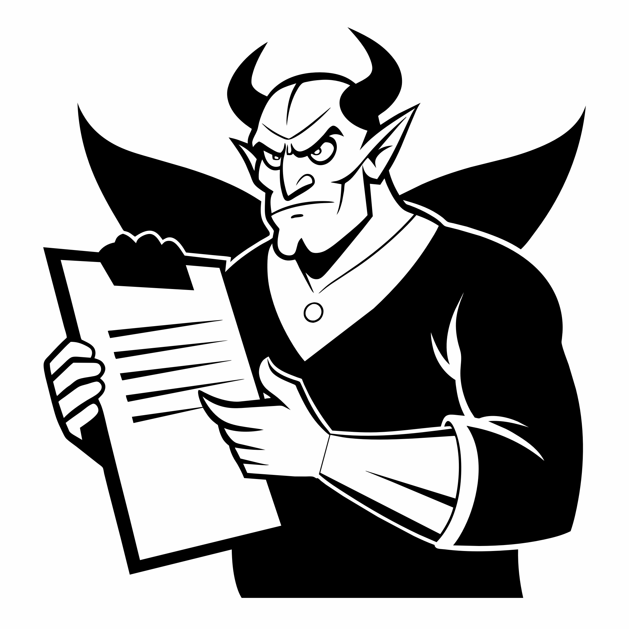 Devil holding up a contract