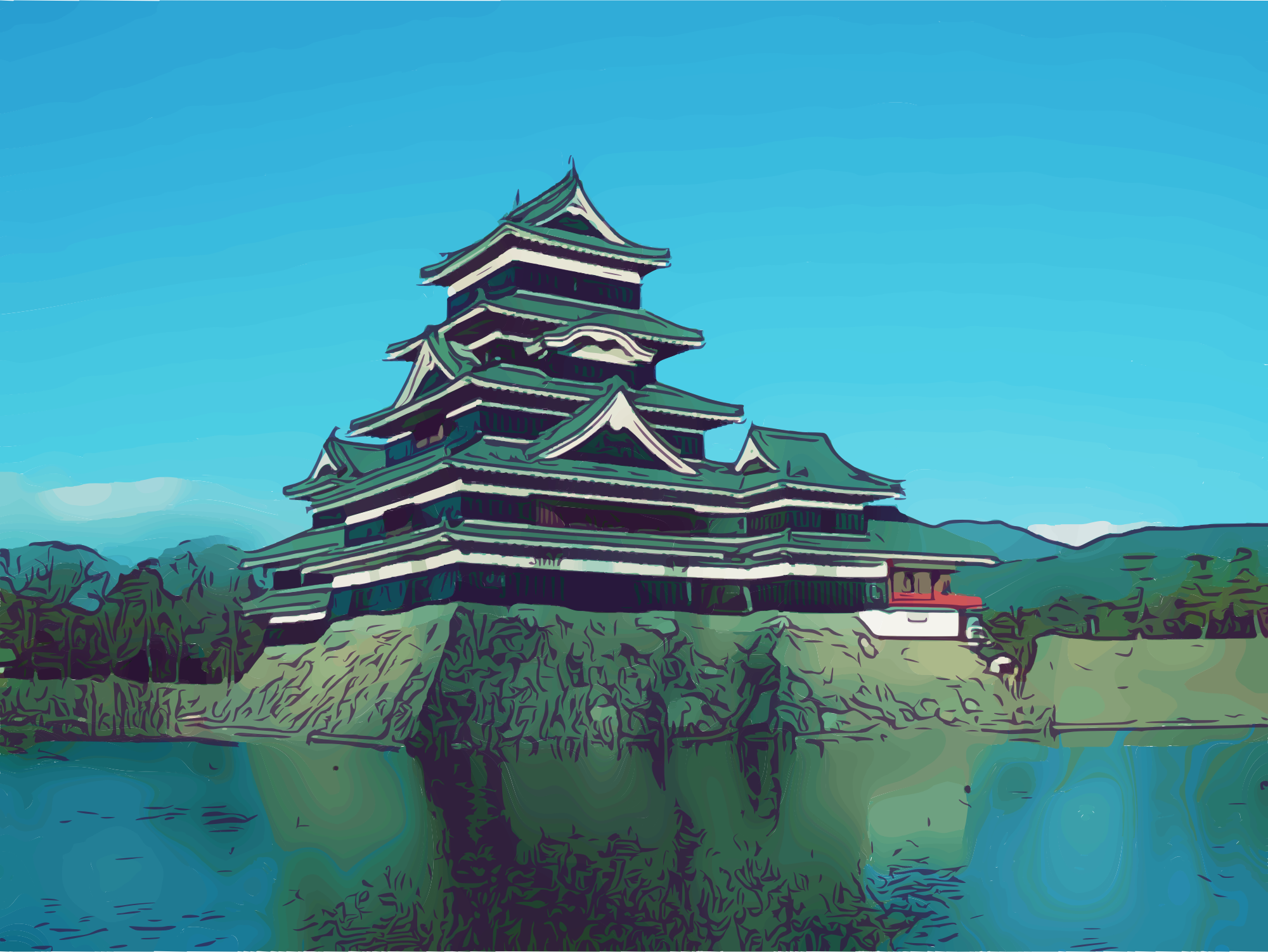 This is Matsumoto castle, one of the top three castles in Japan. It is mostly original and historical. (Based on a Wikipedia public domain source.)
