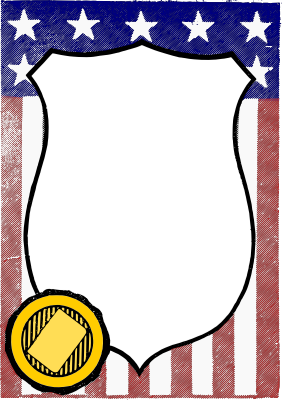 a vintage American Flag shield frame with a yellow seal on the bottom