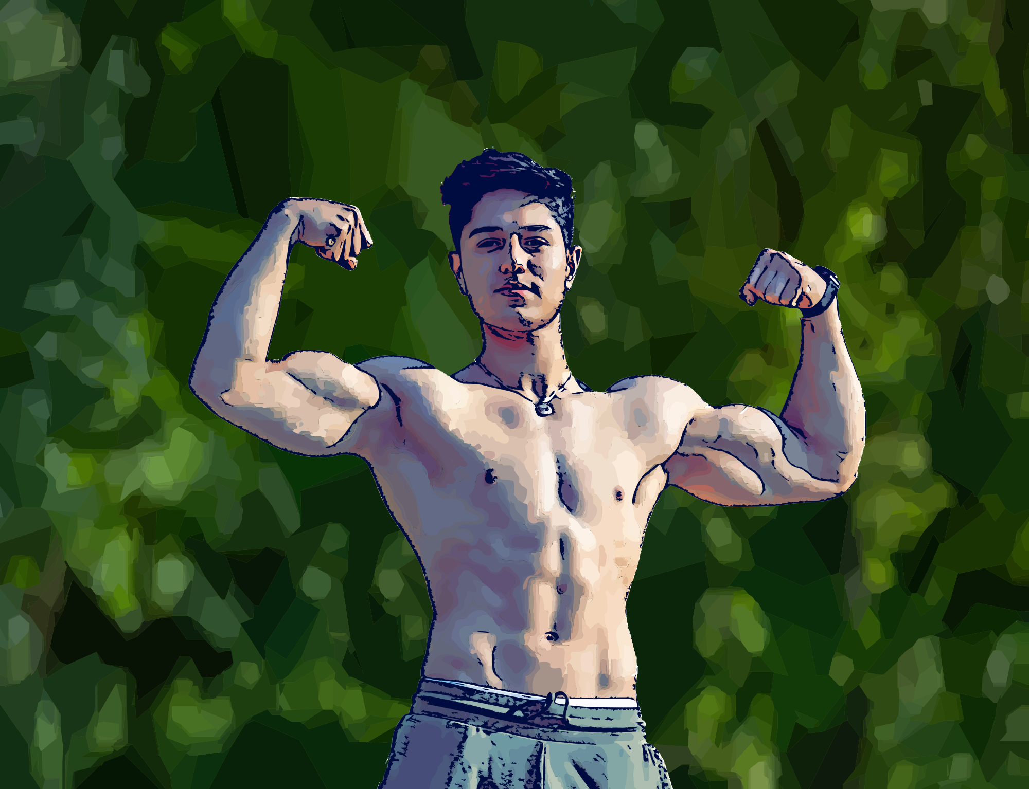 - muscles man strong male topless exercise green publicdomainq flex