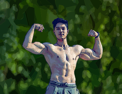 this strong man is flexing his muscles (incidentally, he and the background are separate objects if you wish to have only one and not the other)