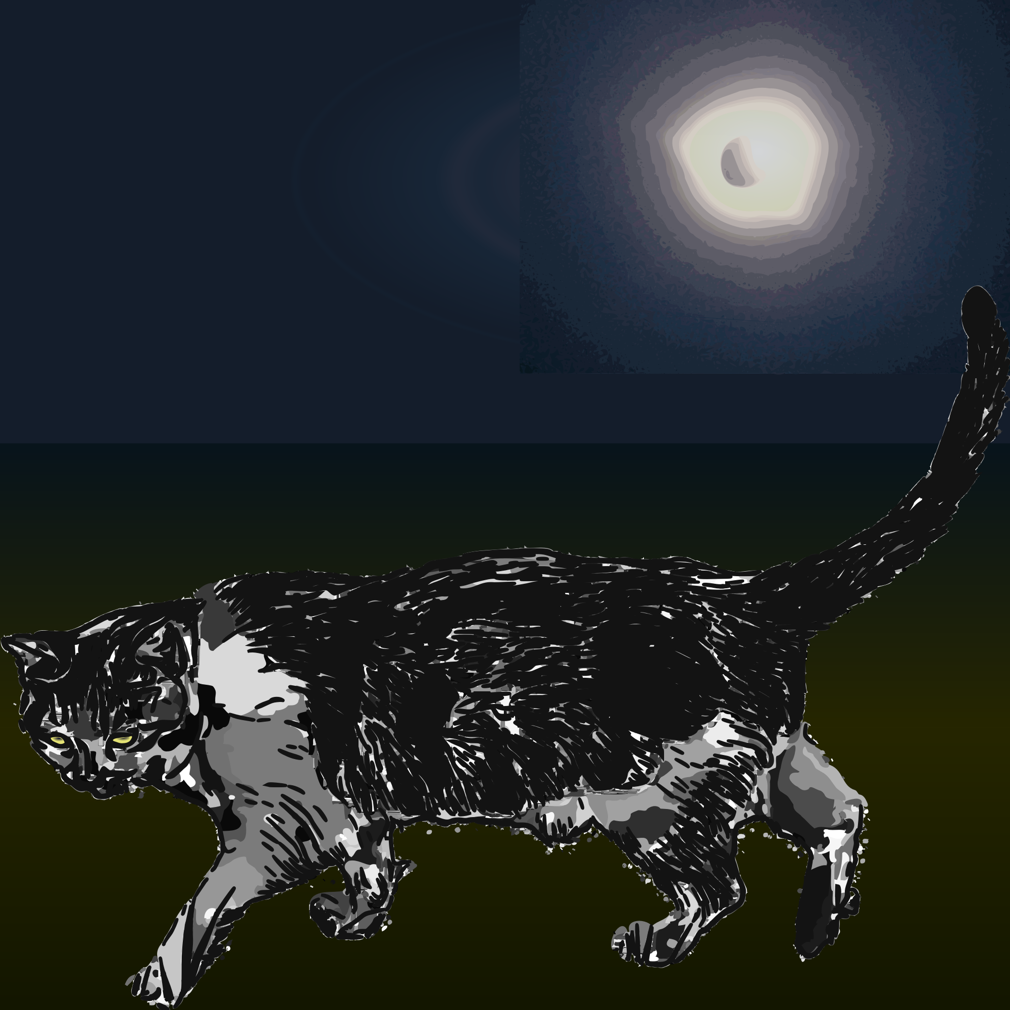 Cat and Selene are old friends, of course, but once in a while Helios drops by. a little camera shy, tho. this is from the last eclipse, and i tried to blend it but you can still see the lines... laura marling 'howl' played just as i was finishing :-)