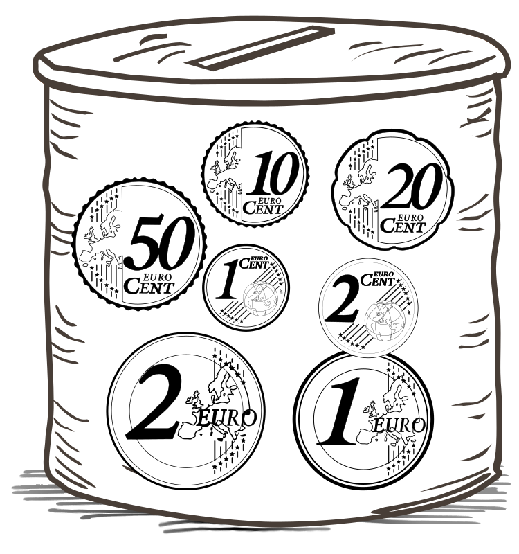 Money box with visible contents.