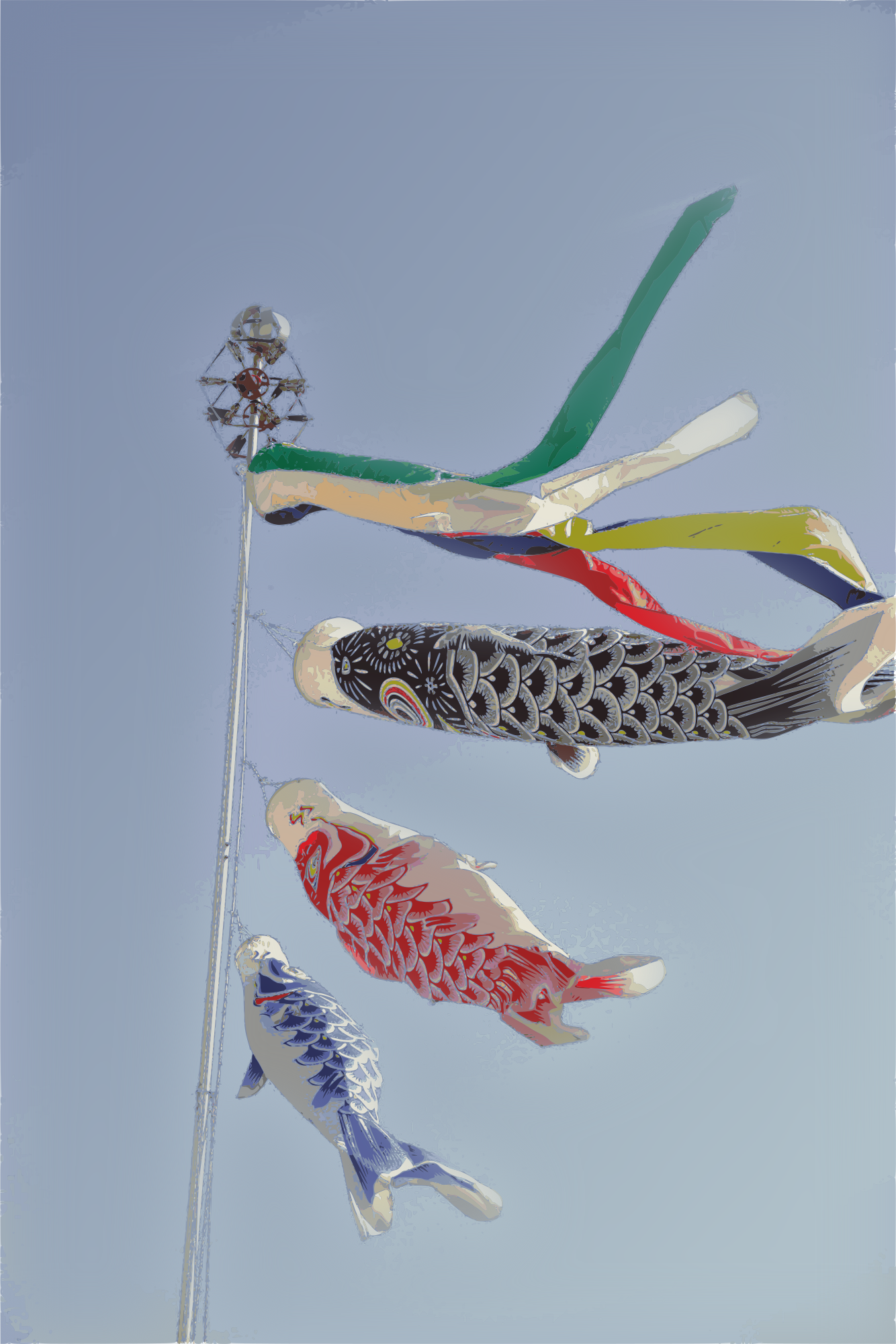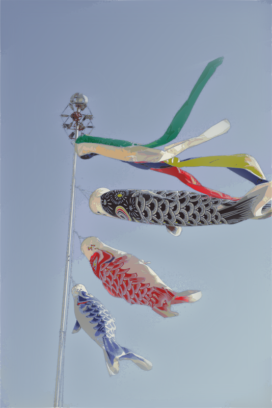 These carp streamers are often hung up around children's day as a hope for sons to grow up strong (based on a public domain image from wikimedia by Fg2)