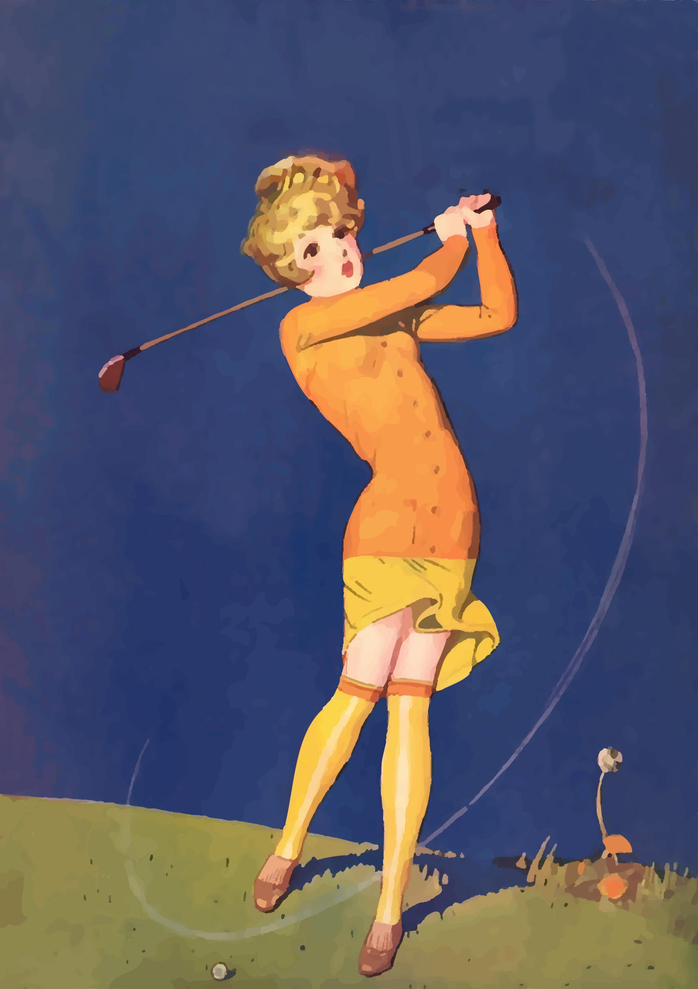 - golf swing lady female flapper woman sports style fashion 1920s 1926 yellow dress