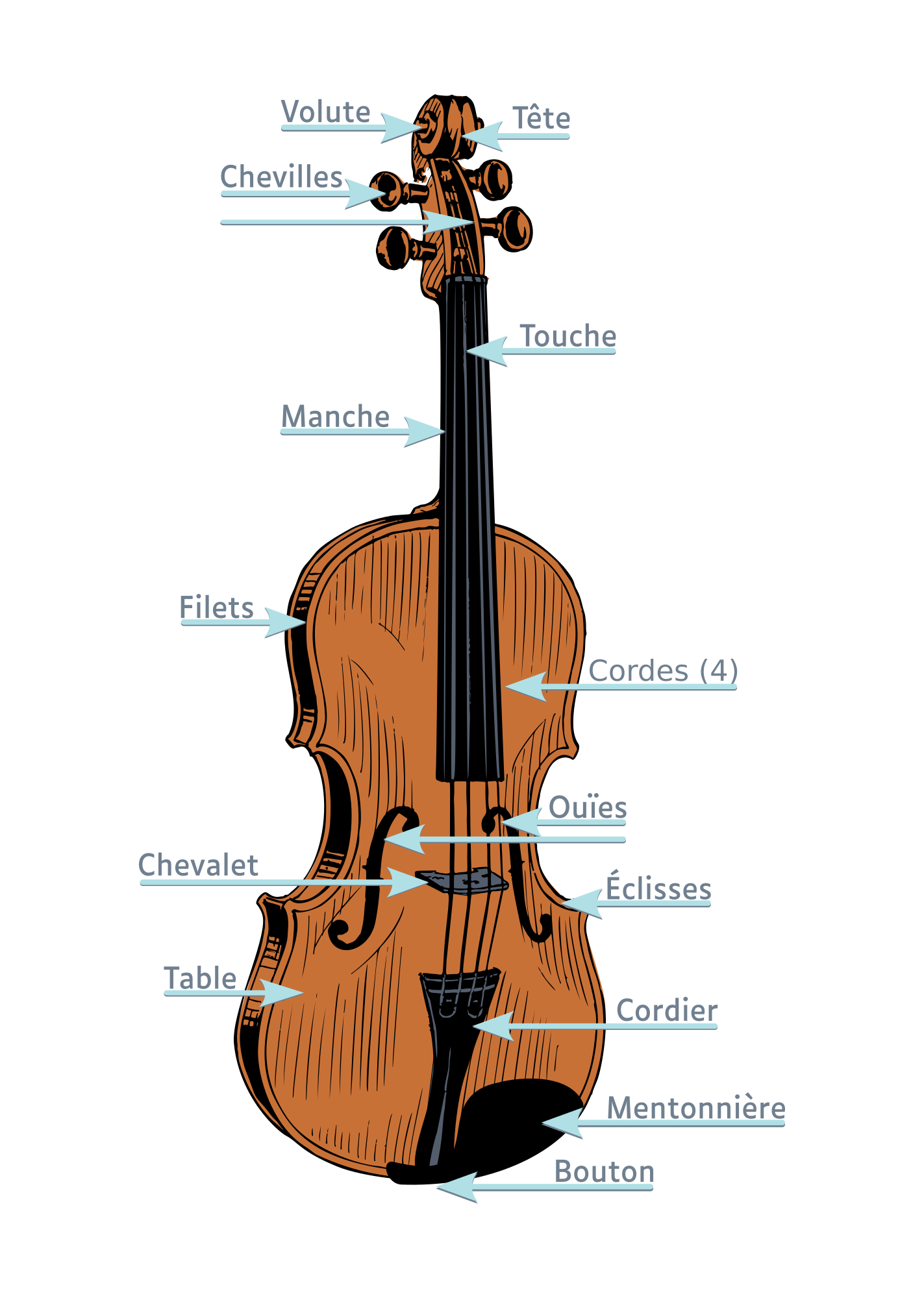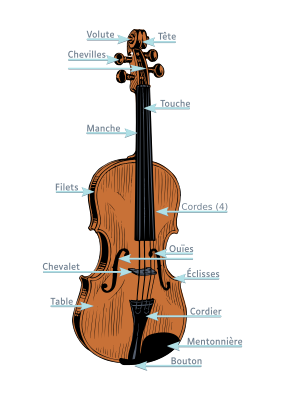 Anatomie d'un violon : les différentes parties.Translation in French os the different parts of the violin (added some more).