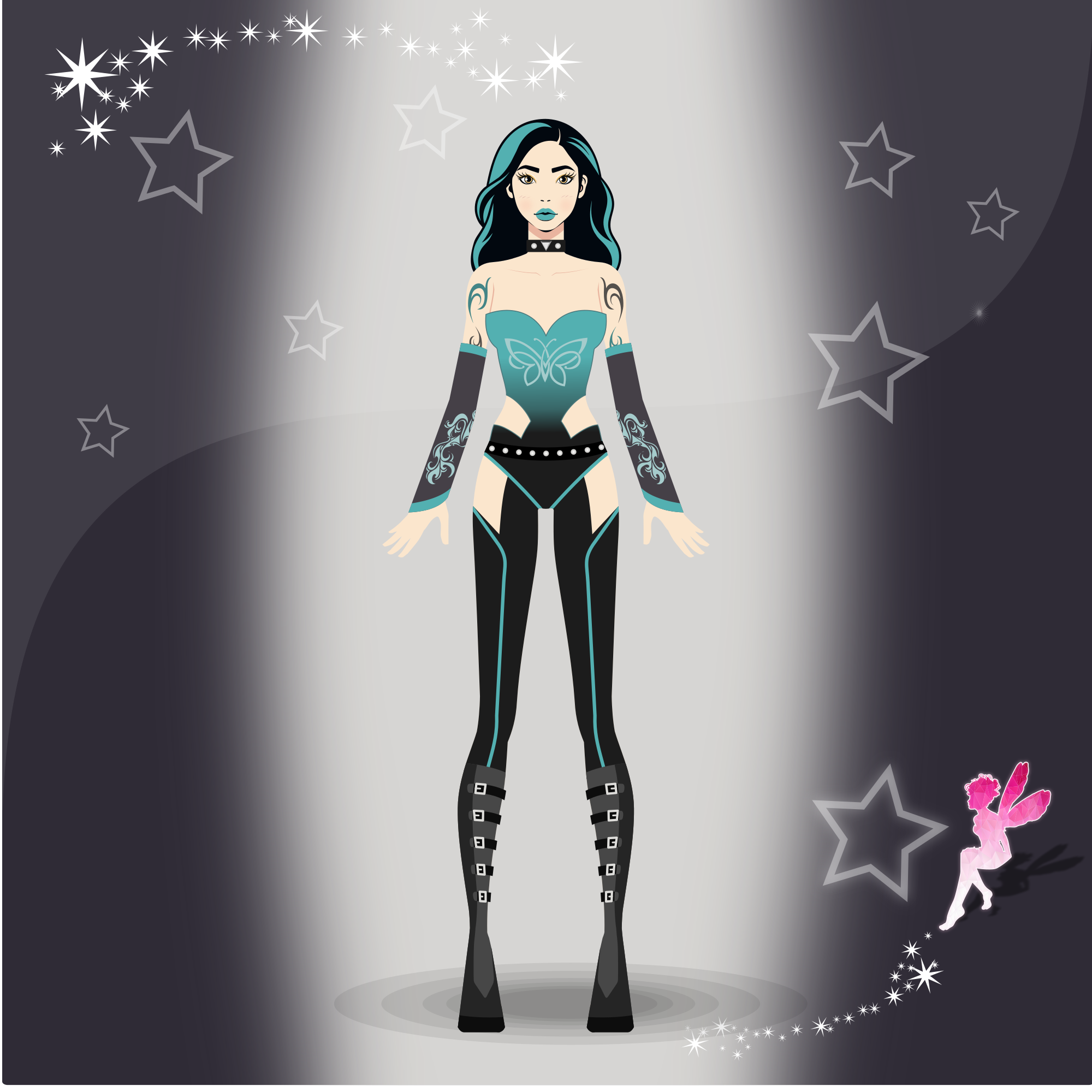Beautiful anime manga style doll with fashionable clothing to edit.