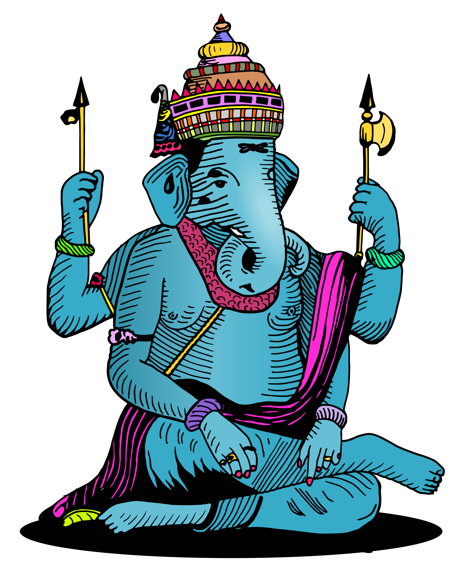 Here, I was inspired by this good vectorized Ganesha to color it before @j4p4n did. For the record, I I colored without knowing the traditional colors of sacred representations in India, so I'm sorry if I shocked some believers.