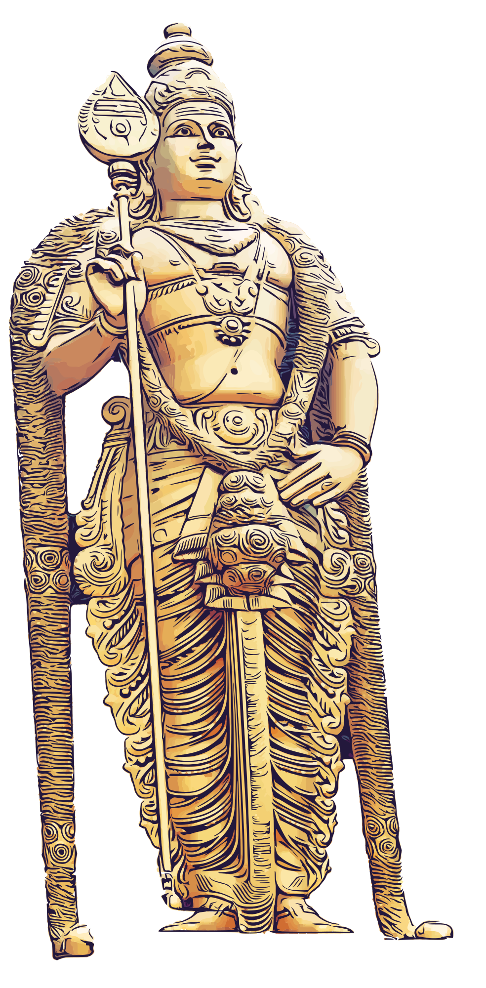 This is the statue of Lord Murugan at the entrance of the Batu caves in Malaysia (based on a public domain photograph shared by user Balon Greyjoy)