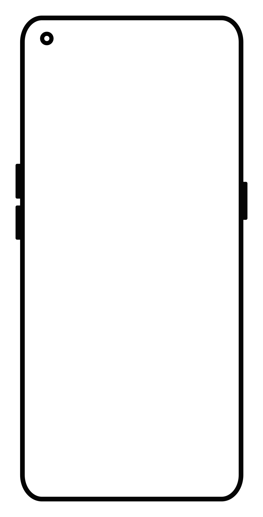 Outline of a OnePlus Nord CE 5G EB2103 smartphone. Created by scanning the phone in a flatbed scanner, then tracing it in Inkscape. Then using some path operations and manually cleaning up the button areas to crop just an outline.