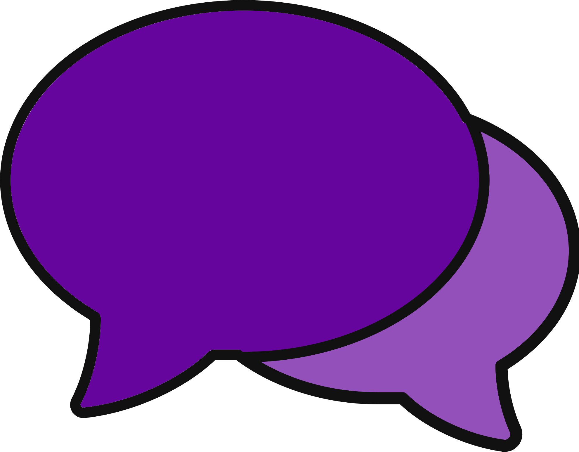 Two overlapping chat icons in purple with no text. One is a lighter shade than the other.
