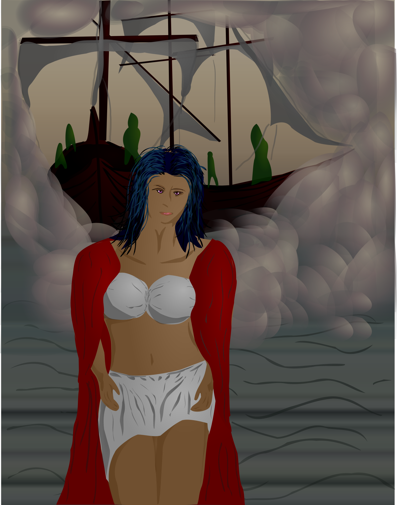 the image of the captain from neko cases 'winnie' in my head - little electrical thing up there - was transmitted through the air from 'lightning held captive firm in her teeth'. anyway, i guess my inner 12 year old had some input too :-) but circe has learned electricity, keeping up with the times and all that. somehow she wired me to draw...