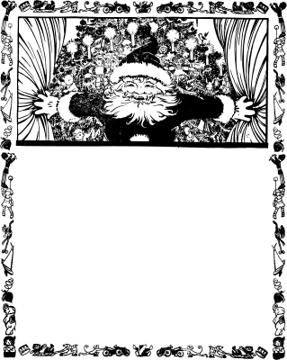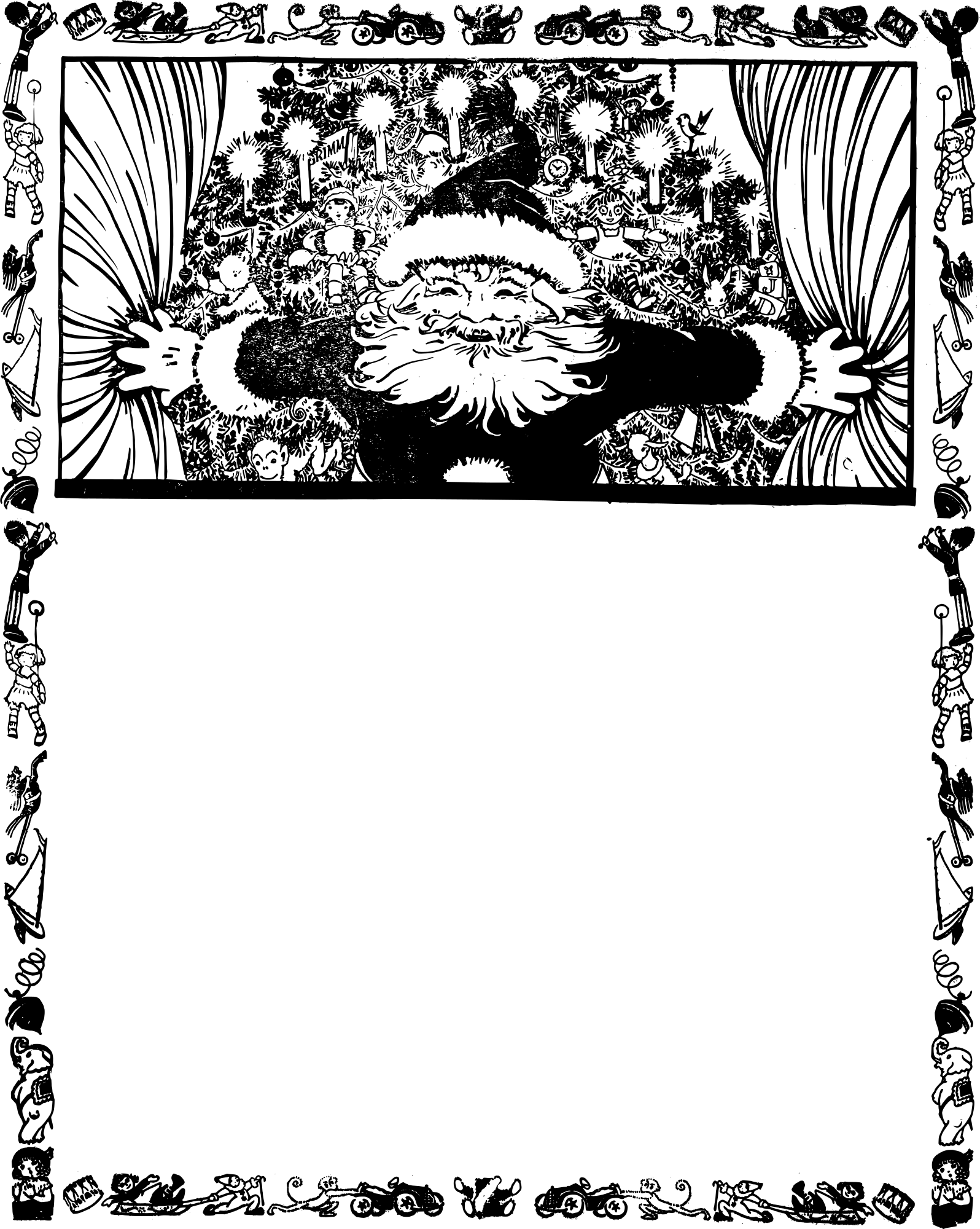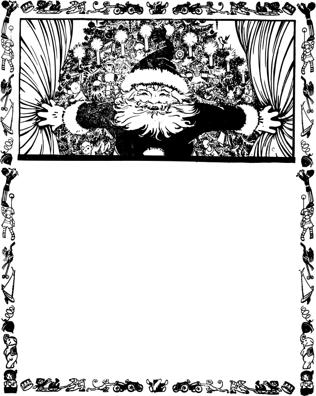 odd old style santa in a frame of toys