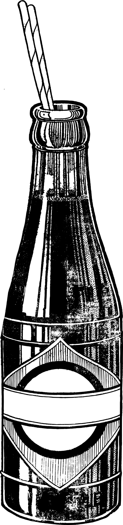 an old soda bottle open with two straws in it