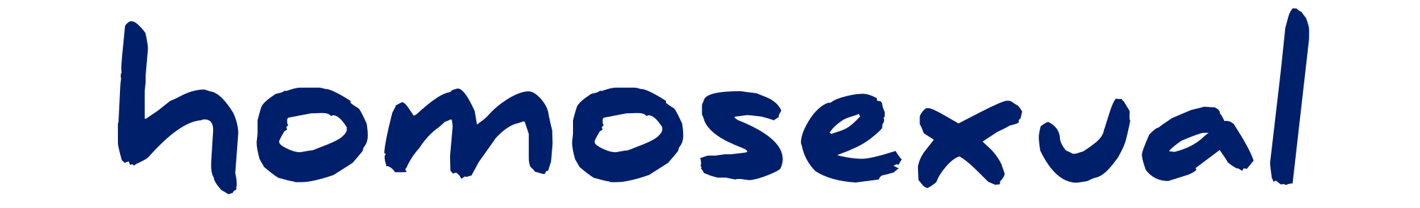 The word homosexual in navy blue lowercase letters. Uses the free Daniel font by Daniel Midgley http://goodreasonblog.com/fontery/