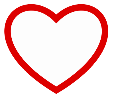 A nearly perfect heart made of two arcs and a right angle using bezier curves. Off-white with red outline.