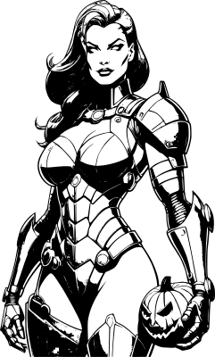 Cyborg woman with pumpkin