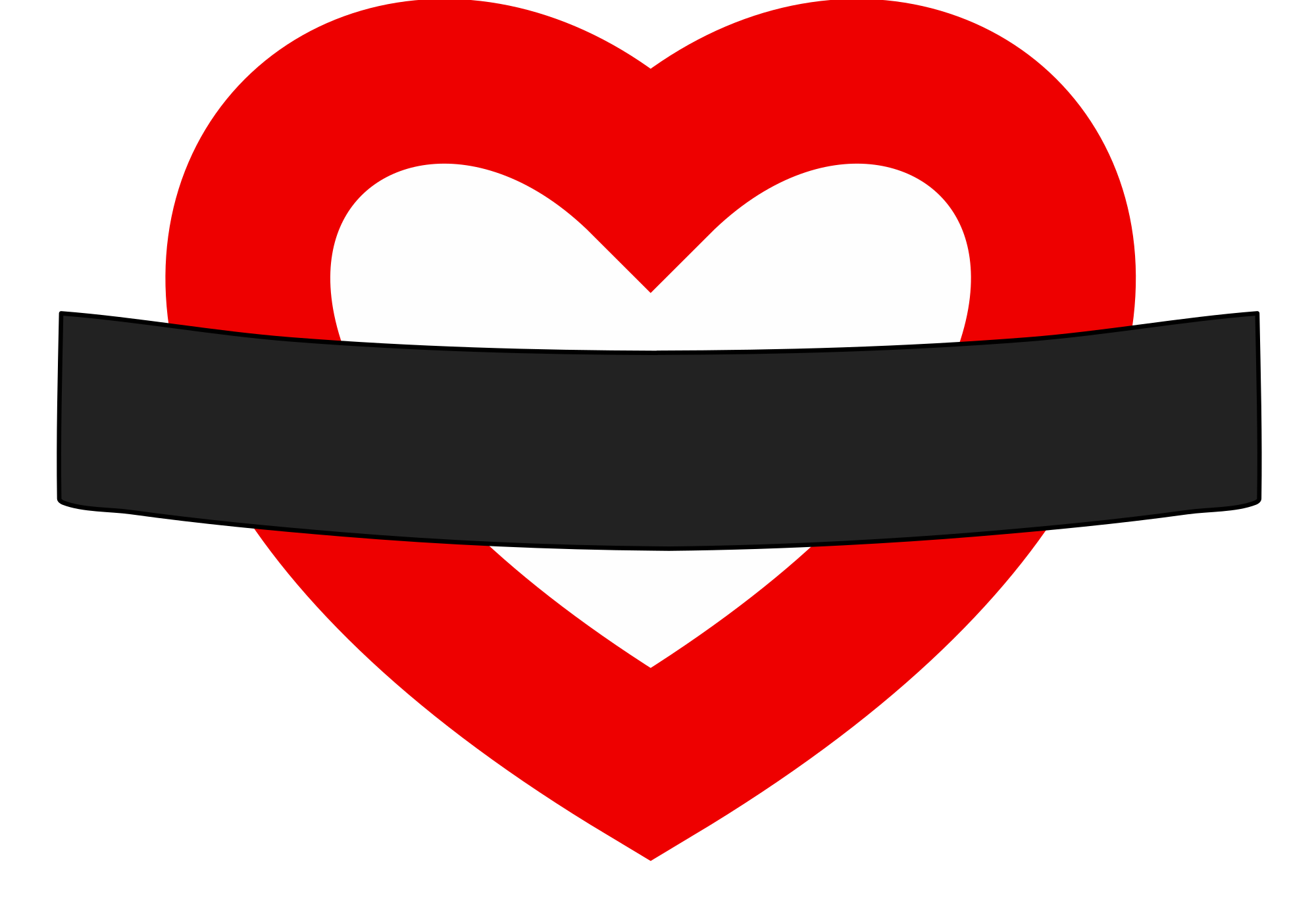 A white heart with a very thick red outline and a thick black curved banner across the middle, in a similar sign to the famous London underground roundels.