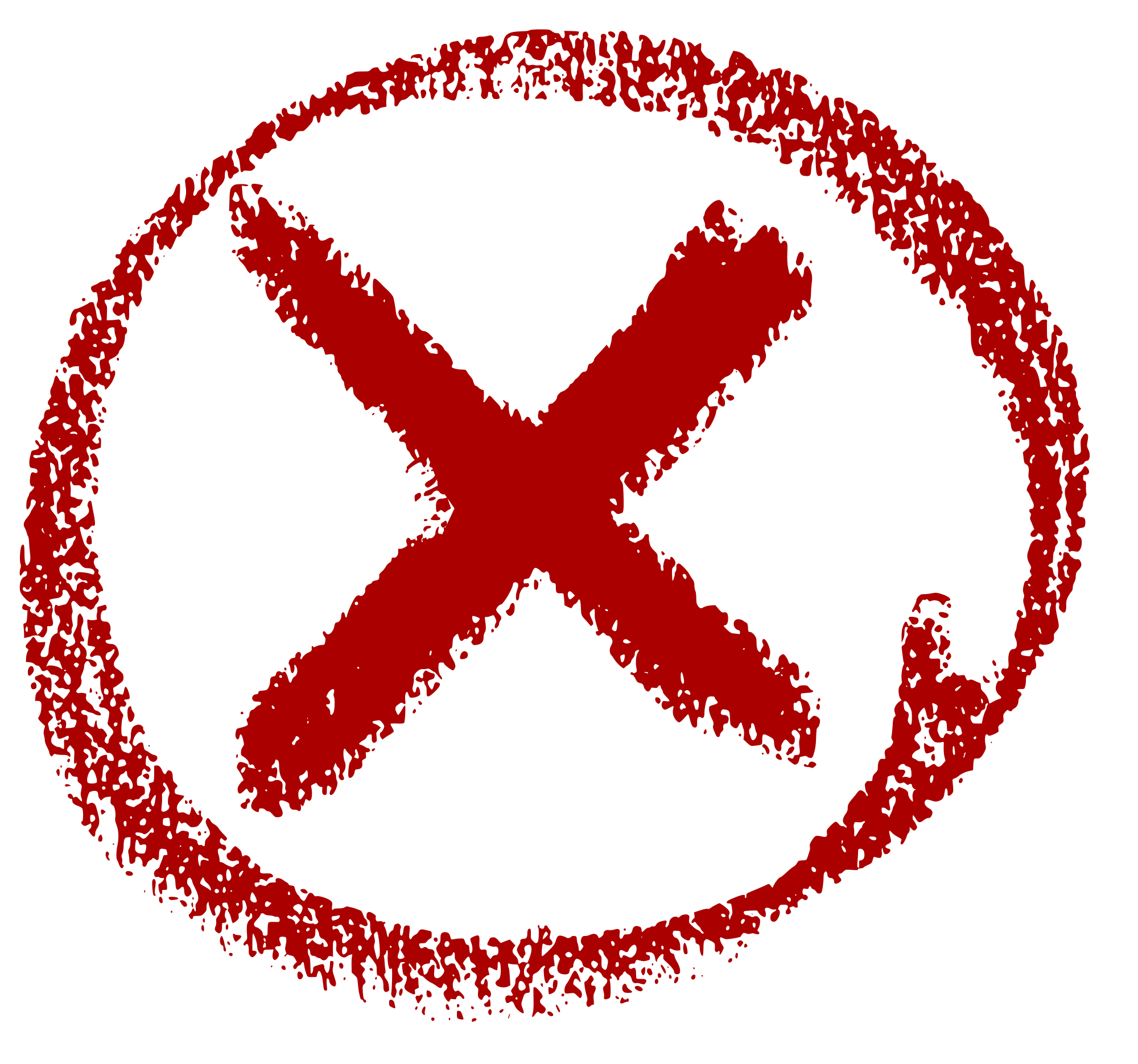 circle and X in red