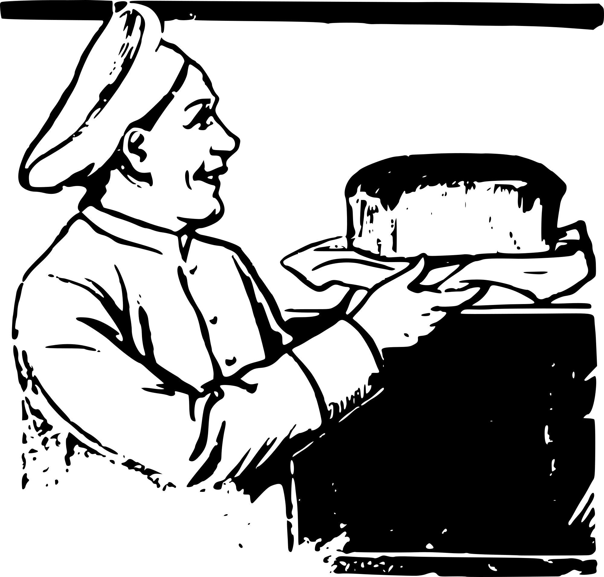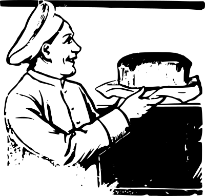 a baker with a loaf of bread