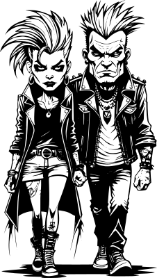 Old punk rock couple cartoon