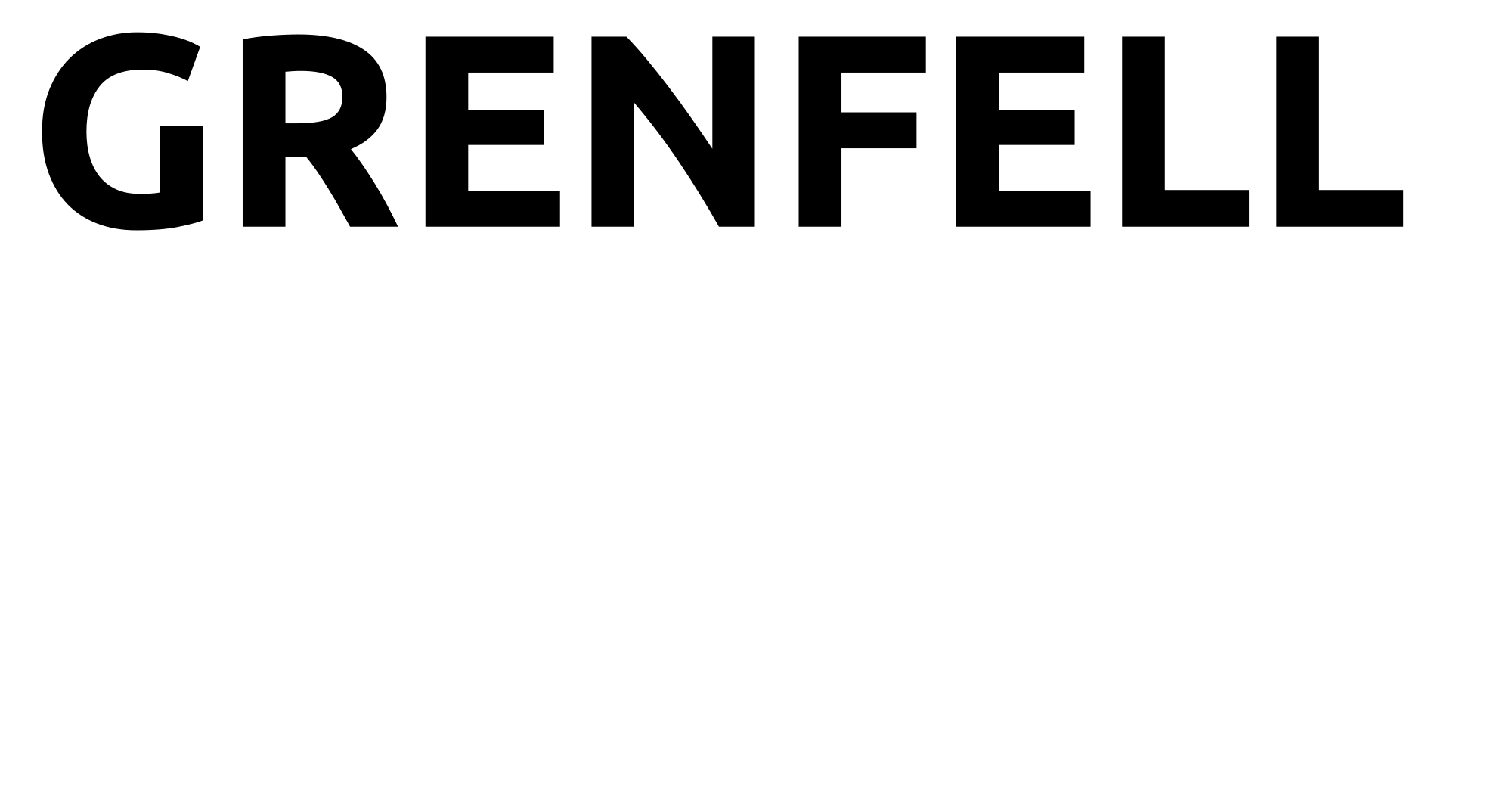 "Grenfell" in black in uppercase. For use in art about the Grenfell fire disaster.