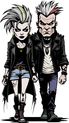 Old punk rock couple cartoon