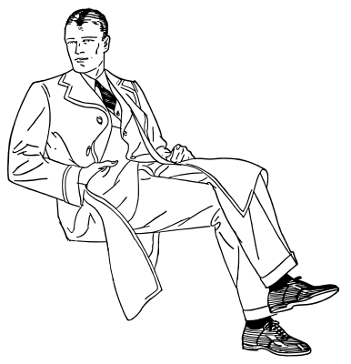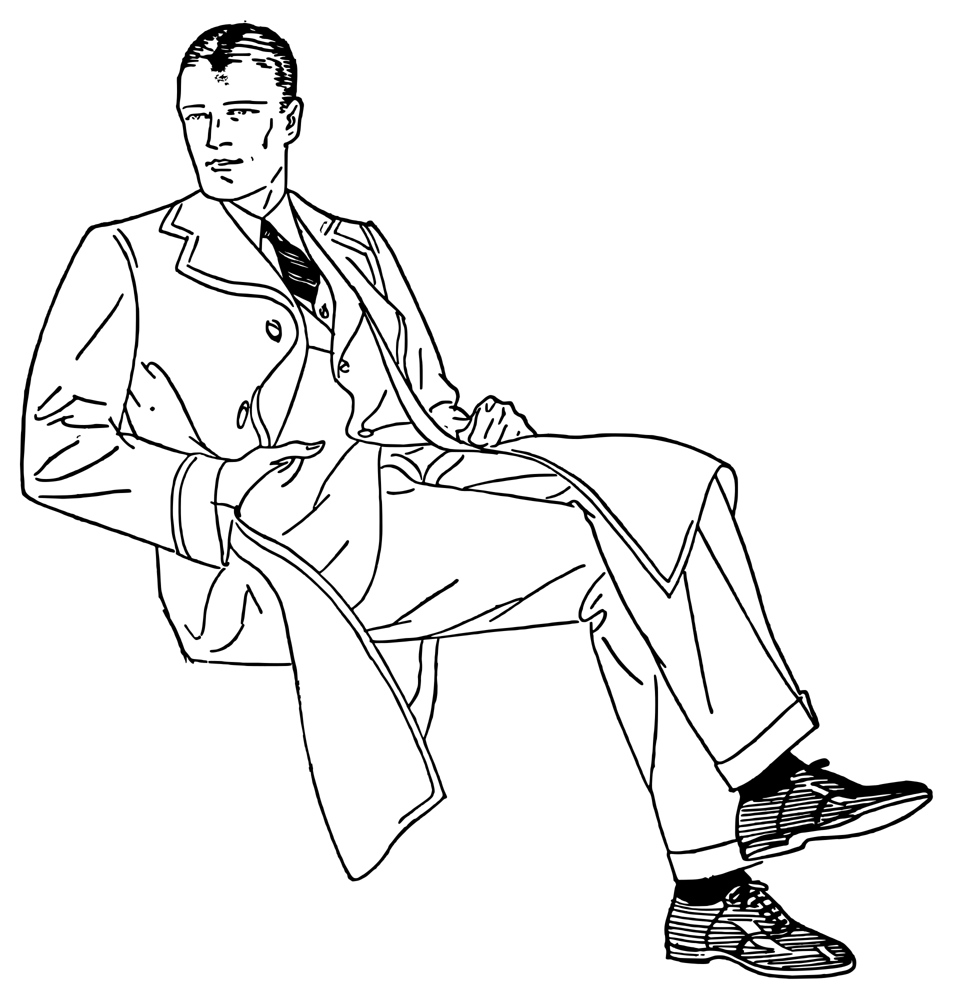 a man in a white suit sitting down