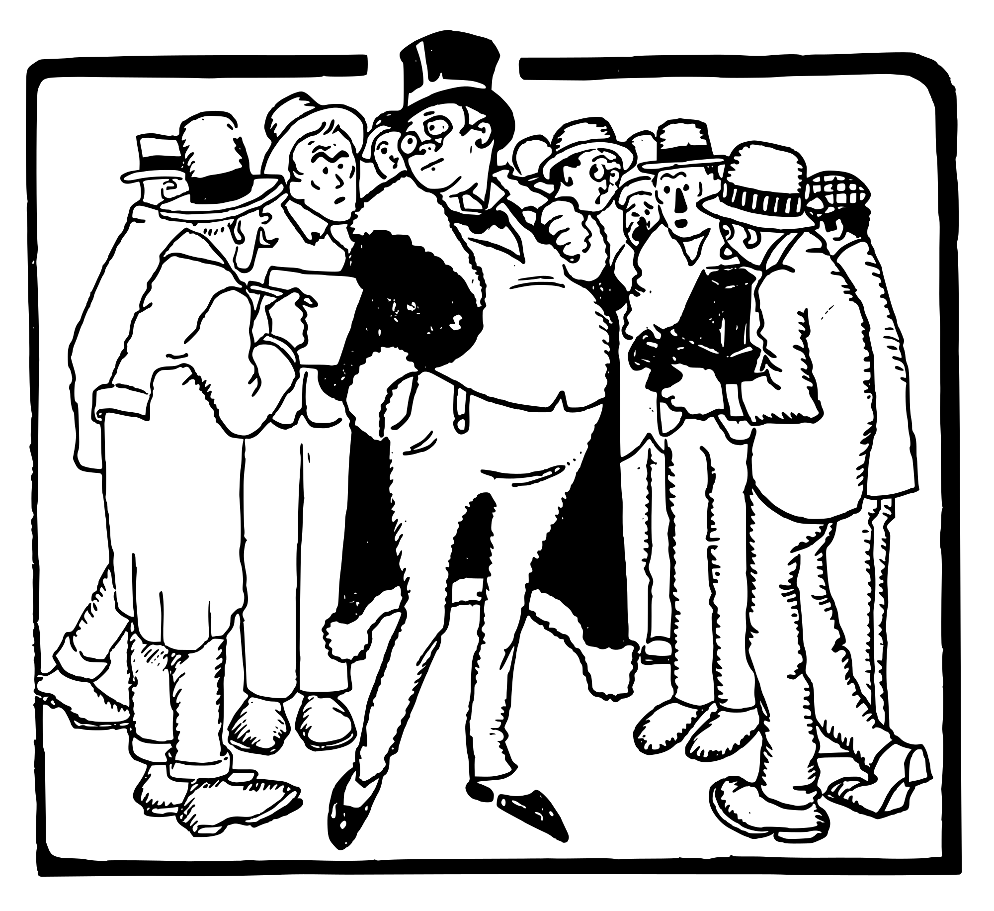 a crowd interviewing a fancy rich man