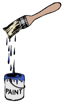 paint can with a blue brush