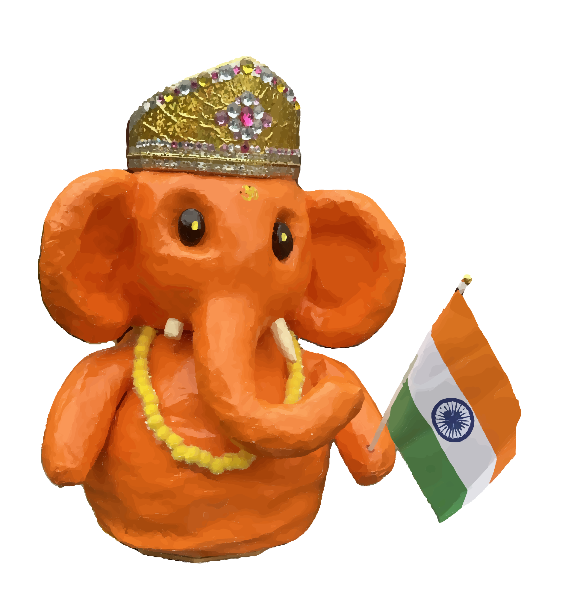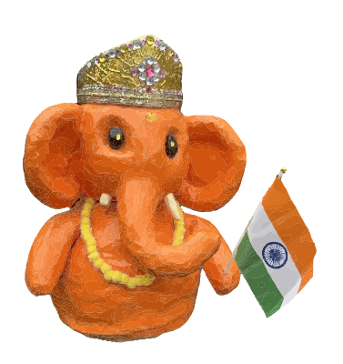 an orange coloured elephant holding an Indian flag
