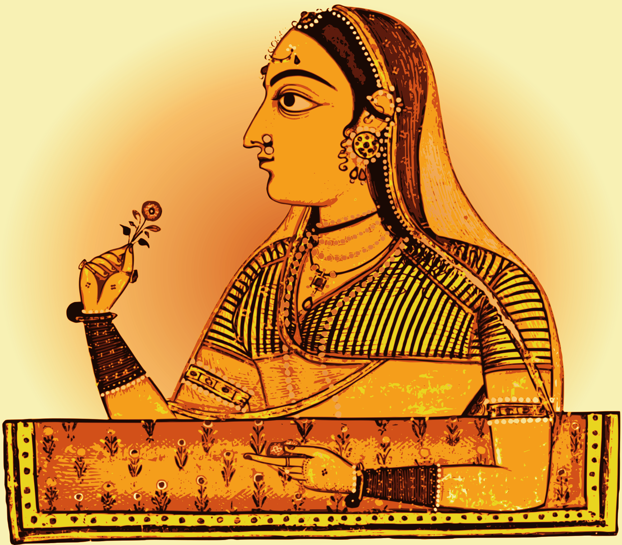 Noblewoman at a Jharokha Window Holding a Rose, from a Portraits of Women series