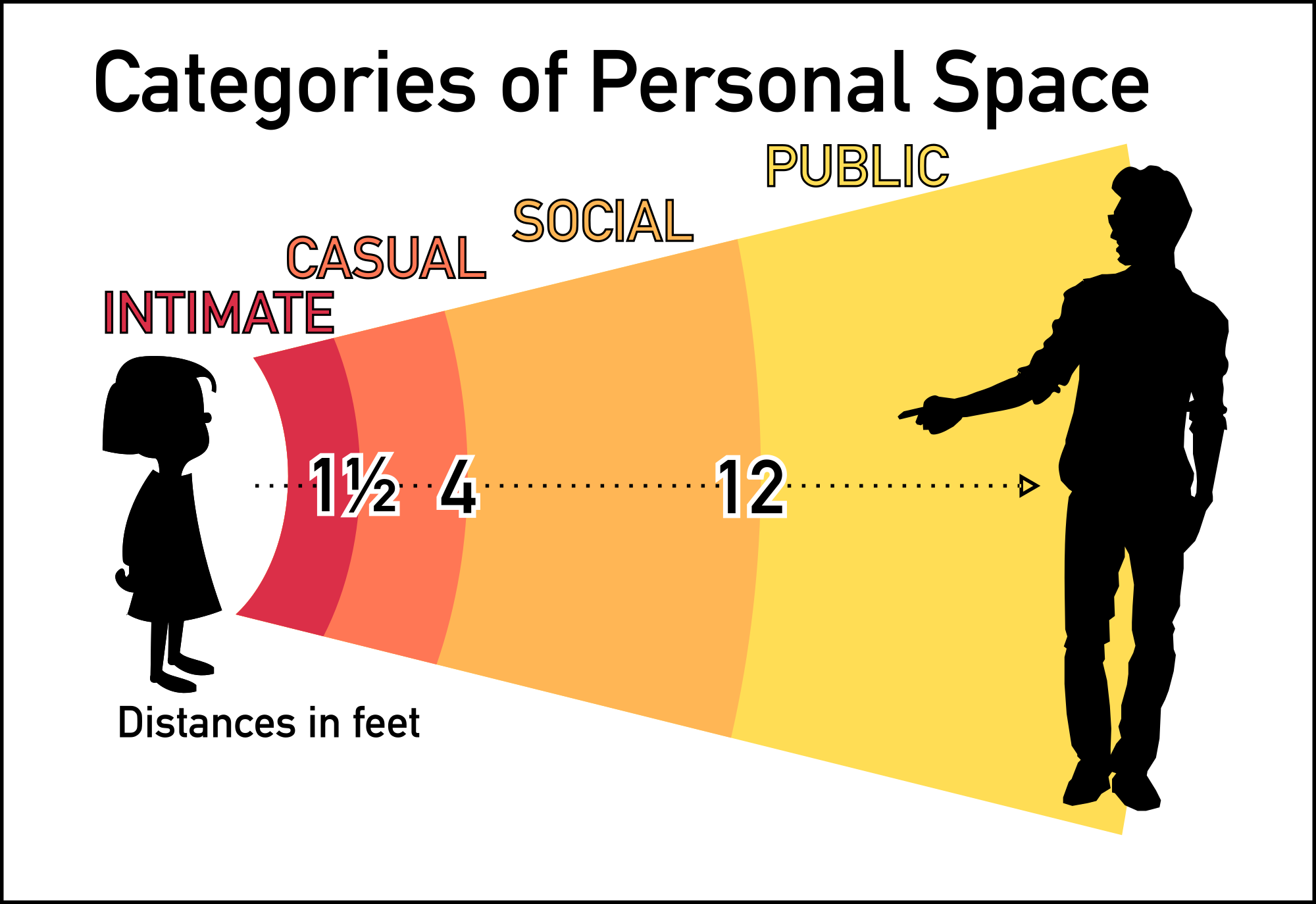 Personal space, categorized as intimate, casual, social, and public interaction, is represented visually.