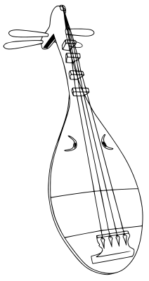 This is a public domain drawing of a "biwa" (musical instrument from Japan) by user Fritzoarg