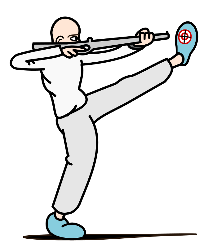 This drawing was born out of a desire to better visualize this rather strange expression, which was recently illustrated here ( https://openclipart.org/detail/350094/shoot-yourself-in-the-foot ) by @j4p4n.