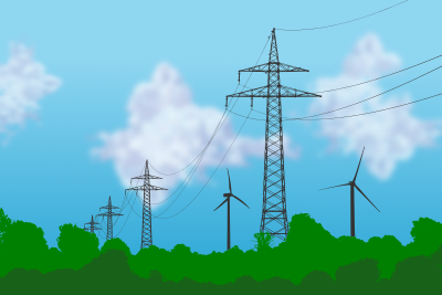 a bit of colour to this scene of pylons, wind turbines and nature!