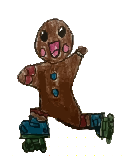 Gingerbread man rollar skating!