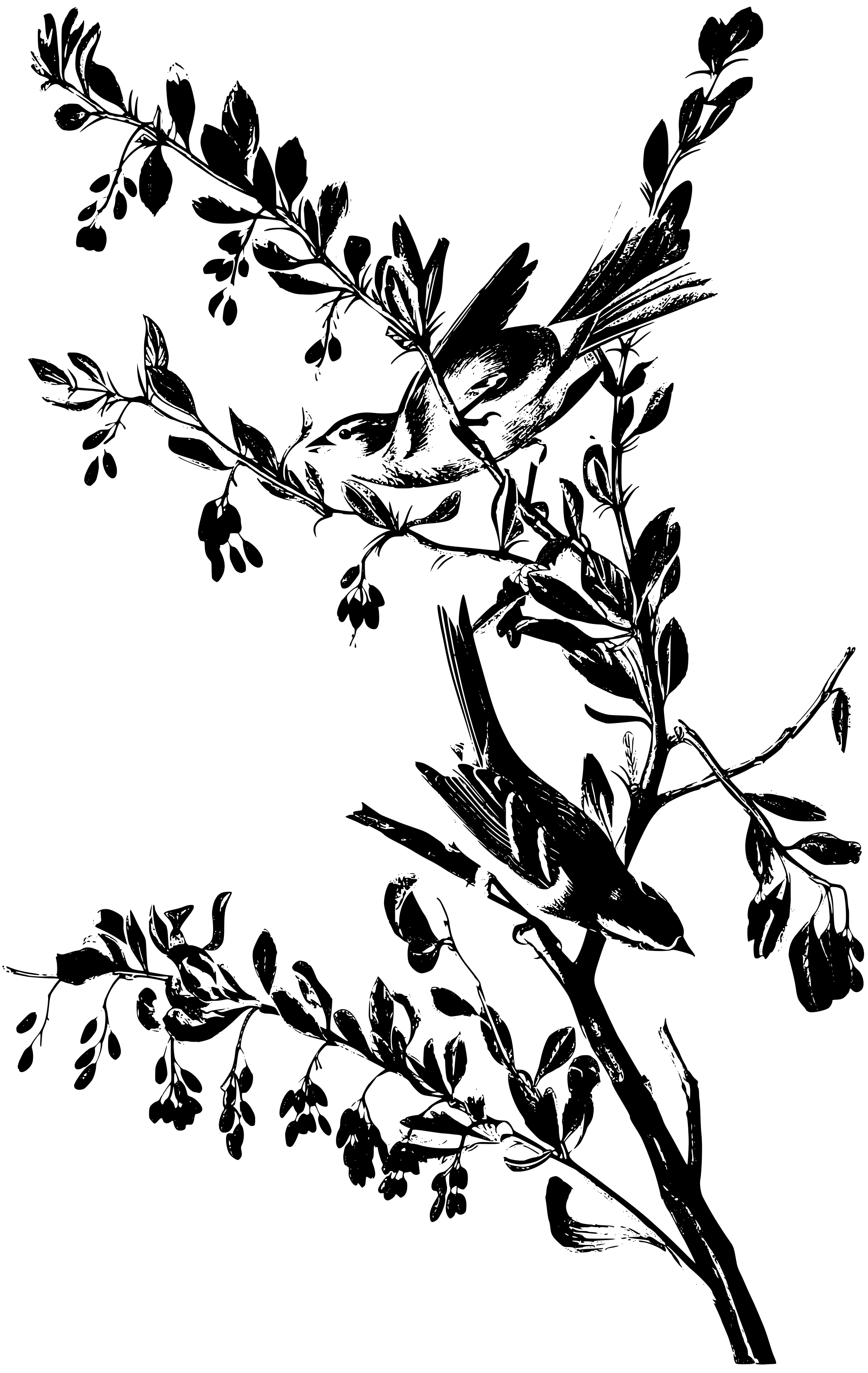 Two sparrows on a tree branch.