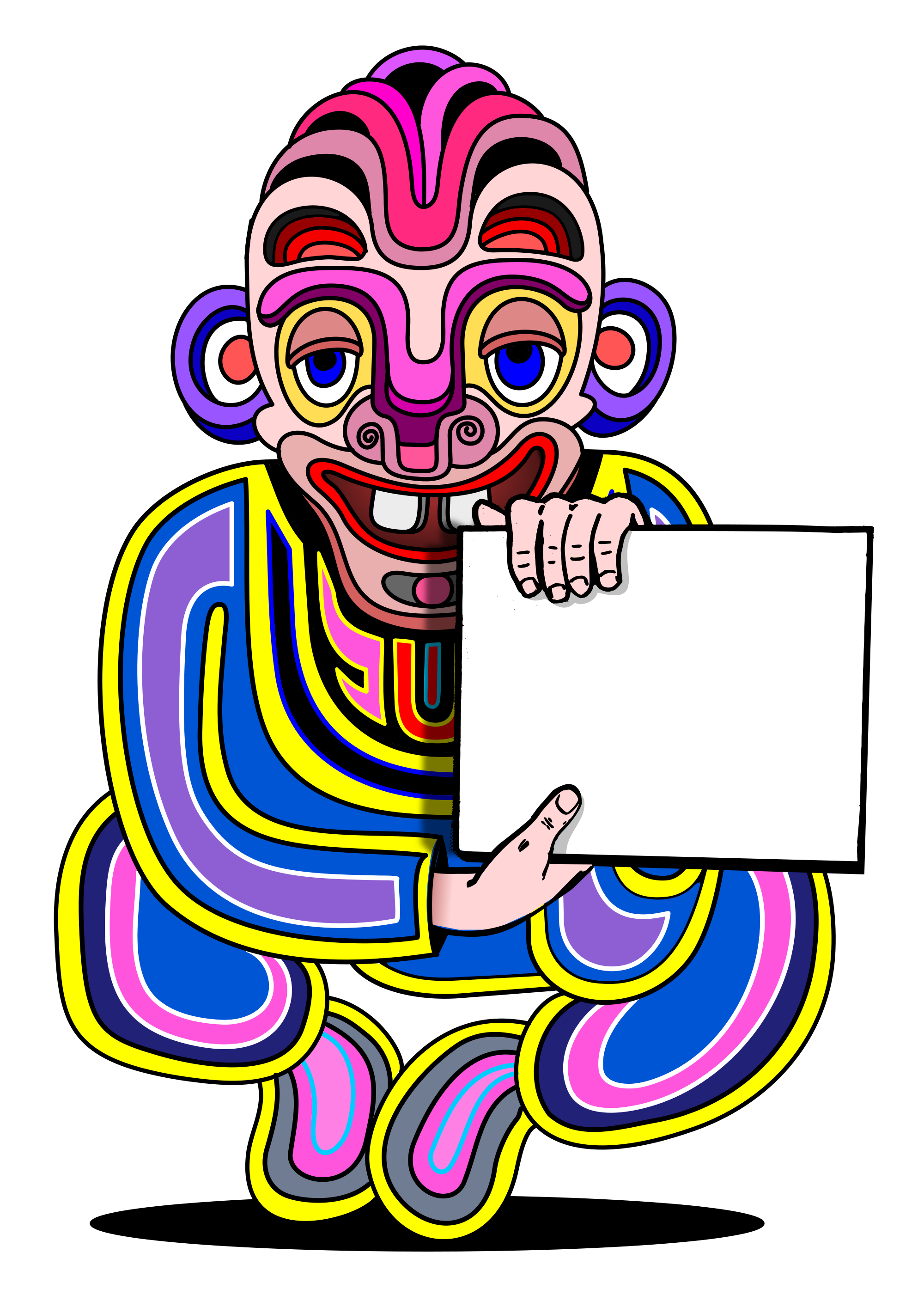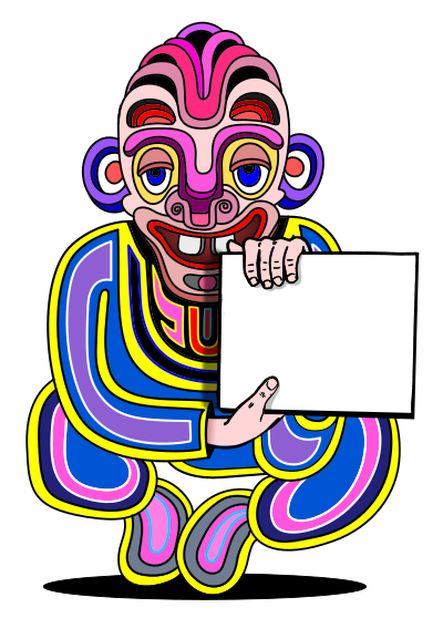 Strange color man with sign.