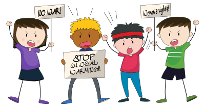 kids protesting common important issues of our time, added text to make it look like a real protest and added one kid to make more balance