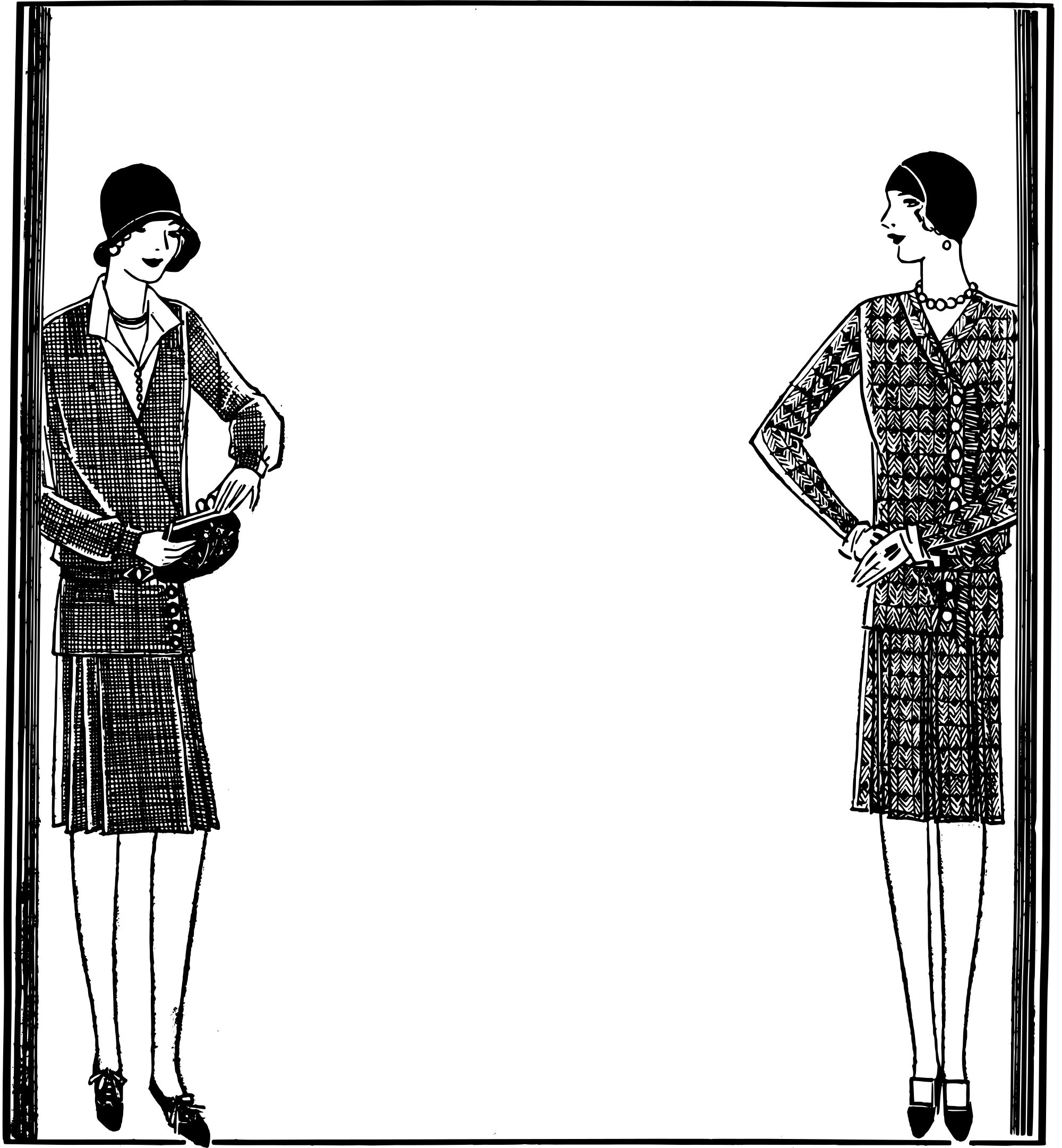 two ladies in flapper fashion from the 1920s