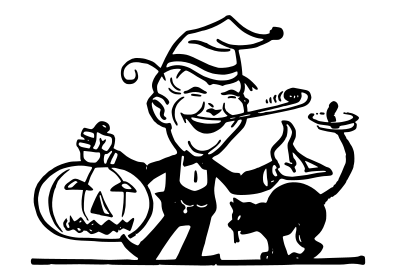 halloween man with a black cat