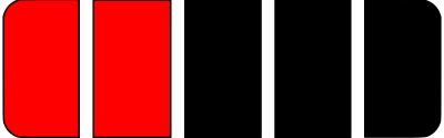 Scale of energy efficiency or battery charge level showing 2 out of 5 in red